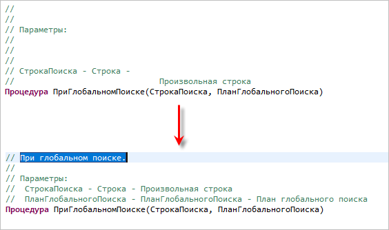 Эту информацию 1C:EDT использует и показывает точно так же, как аналогичную информацию для системных процедур и функций платформы «1С:Предприятие»: