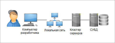 На одном из компьютеров локальной сети расположен кластер серверов «1С:Предприятия». На другом компьютере расположена система управления базами данных, в которой хранится клиент-серверная информационная база.