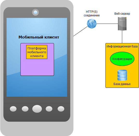 Если проводить аналогию с настольной версией «1С:Предприятия», то мобильный клиент является аналогом тонкого клиента, работающего с базой, опубликованной на веб-сервере.