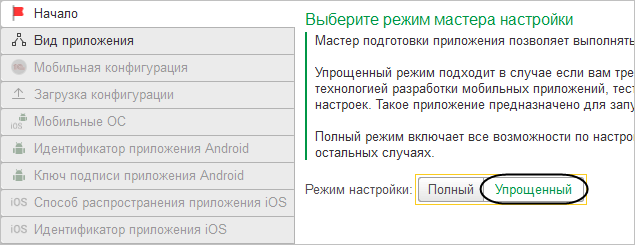 Если вы собираетесь опубликовать собранное мобильное приложение в магазине приложений, то для его сборки нужно использовать полный режим мастера. Выбрать этот режим можно на первом шаге. Когда все шаги мастера будут пройдены, нажмите Опубликовать в магазине.