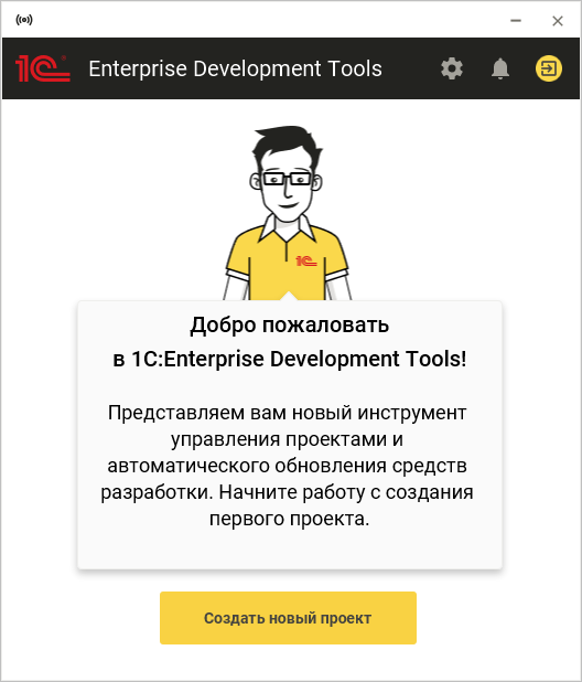 После первого запуска 1C:EDT Start открывает окно приветствия.