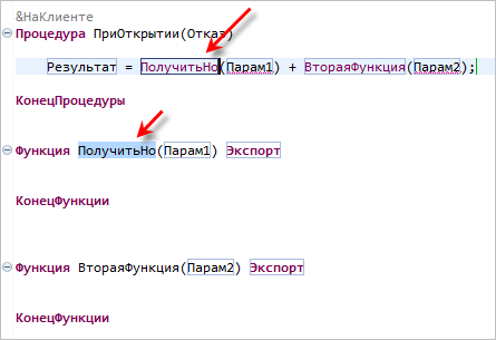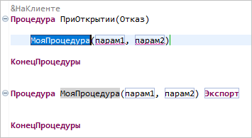 ${МетодИВызов(МояПроцедура, Процедура, парам1, парам2)};