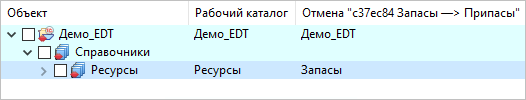 Например, вы добавили справочник Запасы, который потом переименовали в Припасы, а в итоге он получил имя Ресурсы. Теперь вы хотите вернуть предыдущее состояние перед коммитом c37ec84 Запасы —> Припасы. В результате вы получите конфликт.
