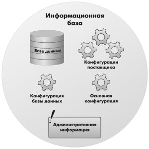 Информационная база — это экземпляр одного приложения «1С:Предприятия». Она представляет собой логически целостную систему, включающую две конфигурации (как минимум), базу данных, а также дополнительную информацию, необходимую для администрирования.
