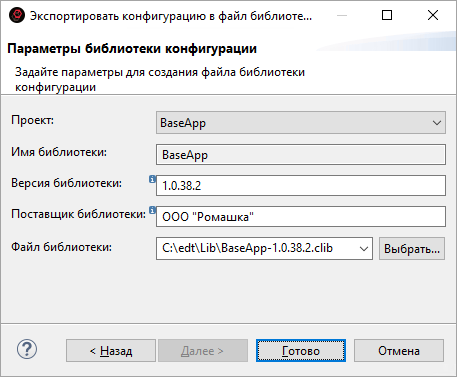 Экспорт в информационную базу, запуск и отладка библиотечного проекта выполняются так
