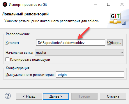 Вы увидите ветки, которые есть в этом репозитории. Если вы точно знаете, какие ветки вам нужны, выберите их. В противном случае отметьте все ветки и нажмите Далее.