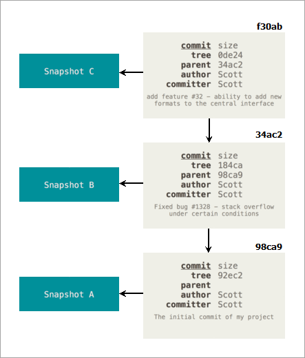 Как вы можете помнить из раздела Снимки, а не различия, Git не хранит данные в виде последовательности изменений, он использует набор снимков (snapshot).