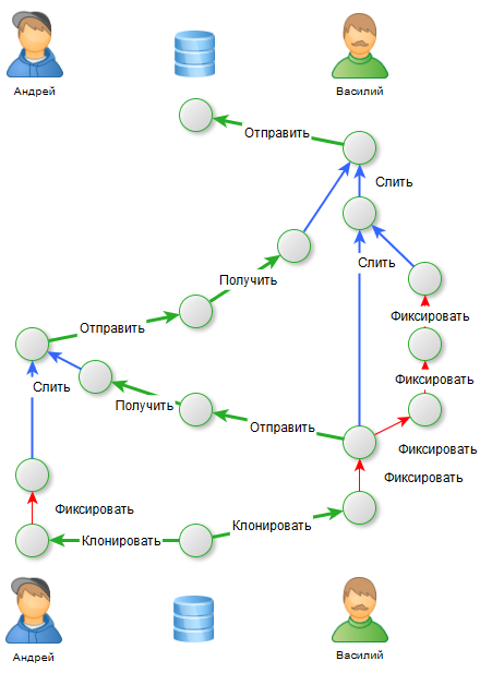 Василий хочет синхронизировать свою работу с Андреем, так что он извлекает изменения с сервера — .