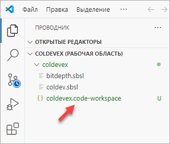 В примере, когда вы создавали репозиторий, таким файлом является файл рабочей области coldevex.code-workspace, который создала Visual Studio Code.