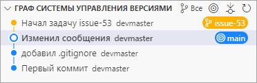 Теперь вы можете переключить ветку, вернуться к работе над своей задачей № 53 и продолжить работу над ней, сделав еще один коммит.