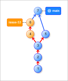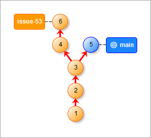 Вы работаете над новой функциональностью и фиксируете изменения. Это приводит к тому, что ветка issue-53 движется вперед, так как вы переключились на нее ранее (HEAD указывает на нее).