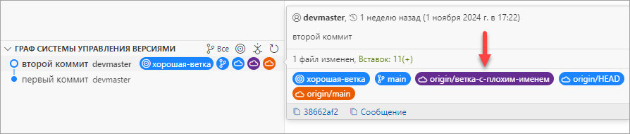 - [deleted] ветка-с-плохим-именем Теперь старое имя ветки полностью заменено исправленным.