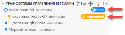 Допустим, вы разделили свою работу и сделали коммиты в две разные ветки: main и experiment.