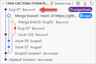 Когда вы получаете изменения с сервера (Принесение (Fetch)), вы извлекаете этот новый коммит (bug-97).