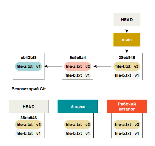Основное предназначение Git — это сохранение снимков последовательно улучшающихся состояний вашего проекта, путем управления этими тремя деревьями.