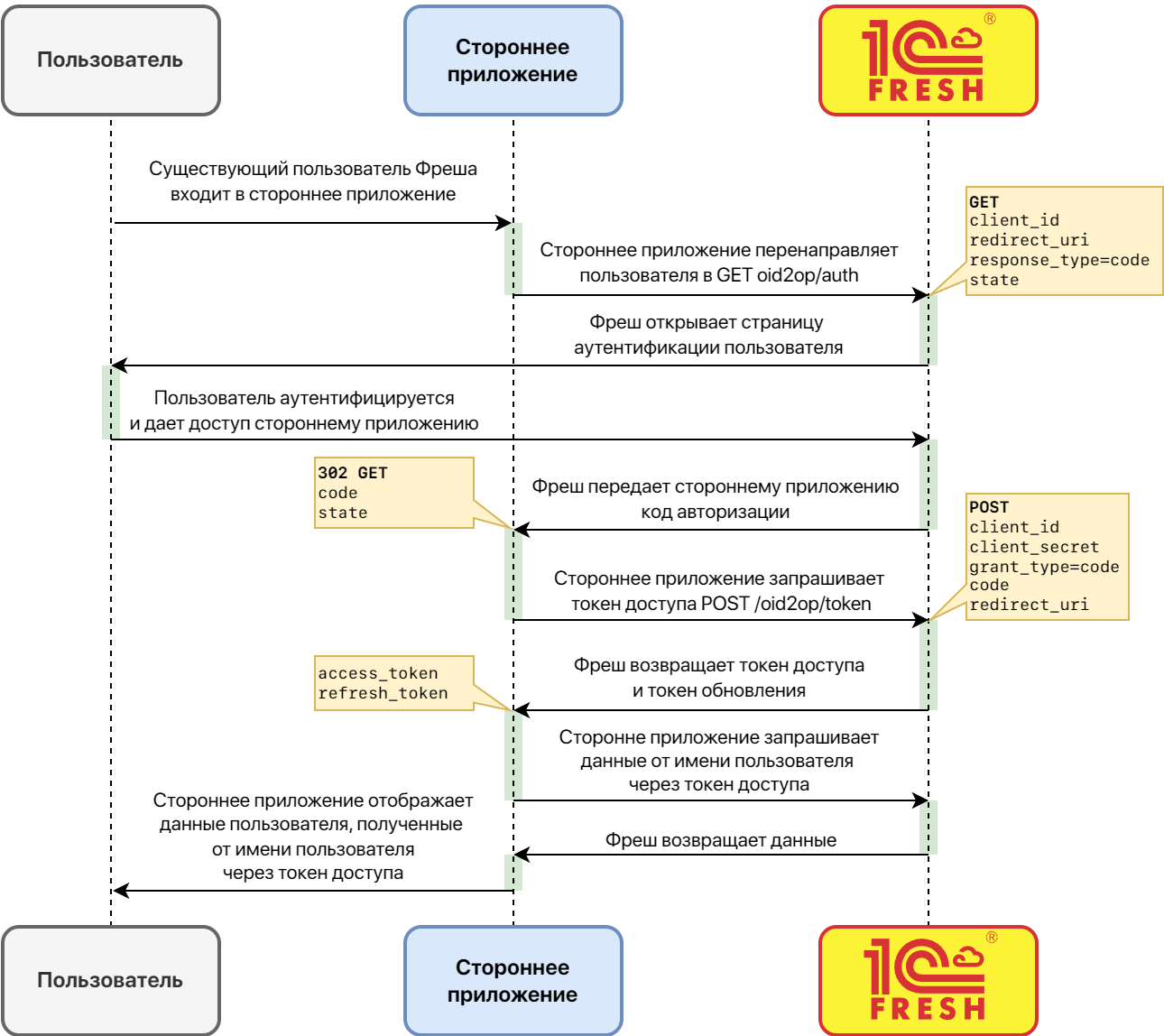 Сервис Фреш поддерживает подключение сторонних приложений с возможностью работы от имени пользователя сервиса через эти сторонние приложения.