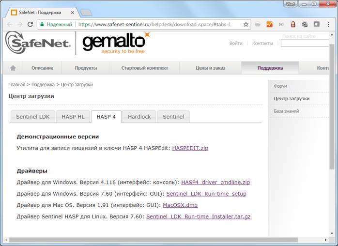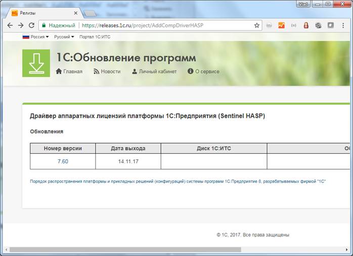 На момент написания данной статьи актуальная версия драйвера защиты – 7.60. Поэтому, если установленная у вас версия драйвера защиты ниже 7.60, то необходимо обновить версию драйвера до 7.60 и выше.