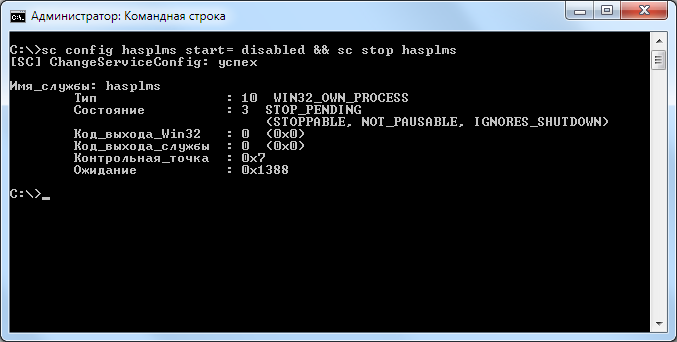 sc config hasplms start= disabled && sc stop hasplms