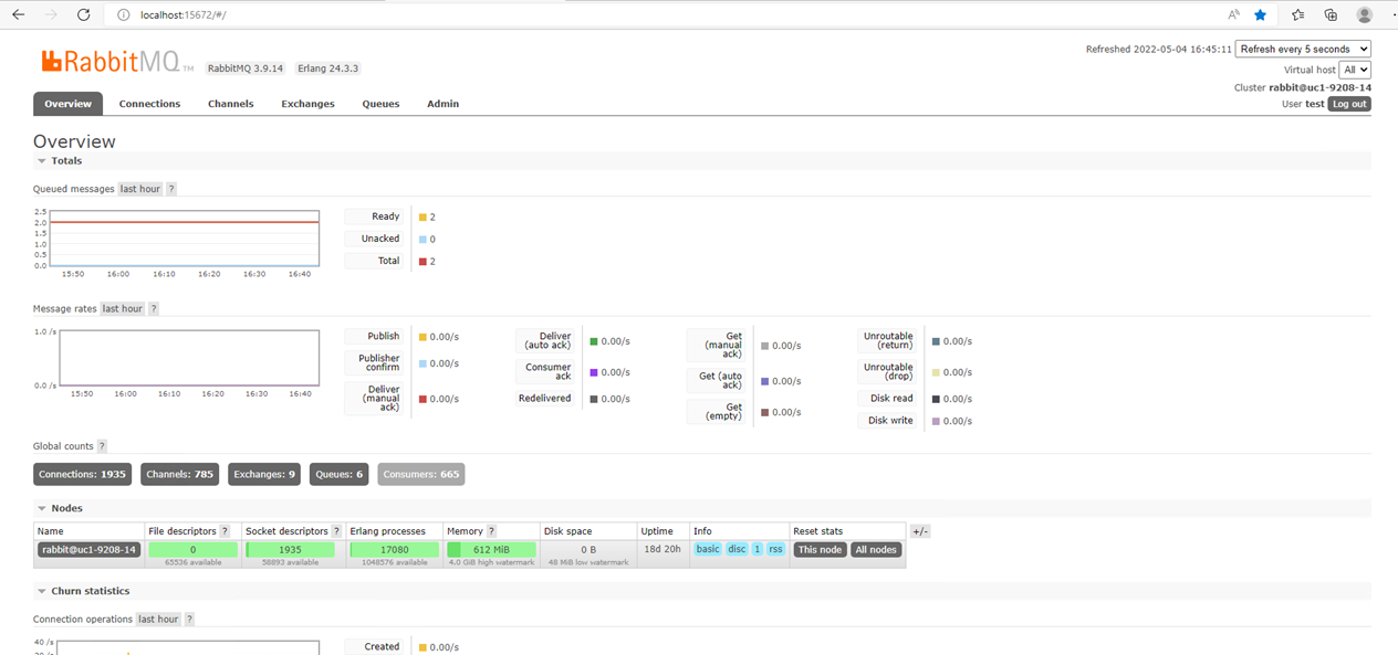 - Откройте панель управления брокером сообщений RabbitMQ и перейдите на вкладку Queues.