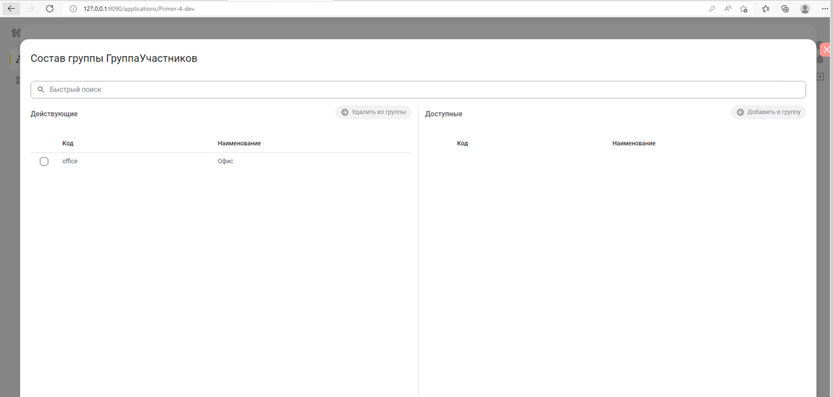 - Задайте код системы — office и наименование — Офис. Нажмите Добавить.