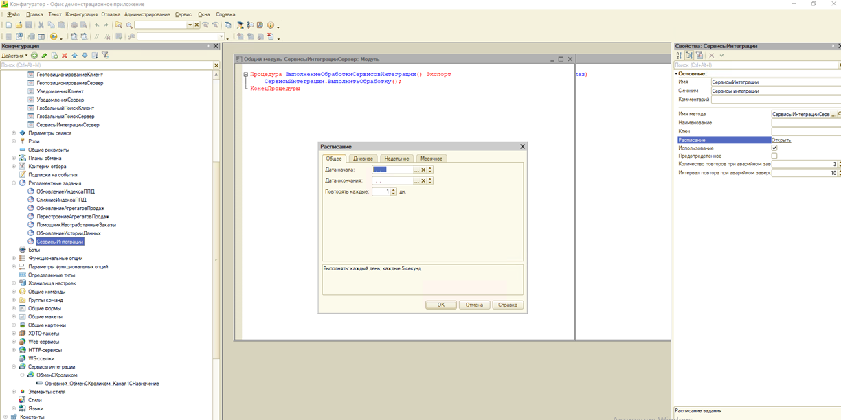 Создайте регламентное задание с именем СервисыИнтеграции.