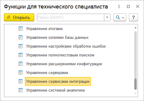 - Разверните ветку Стандартные и откройте Управление сервисами интеграции: