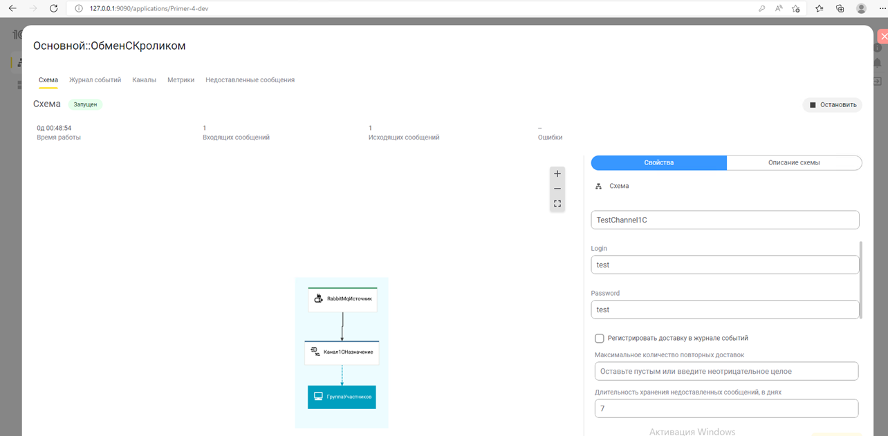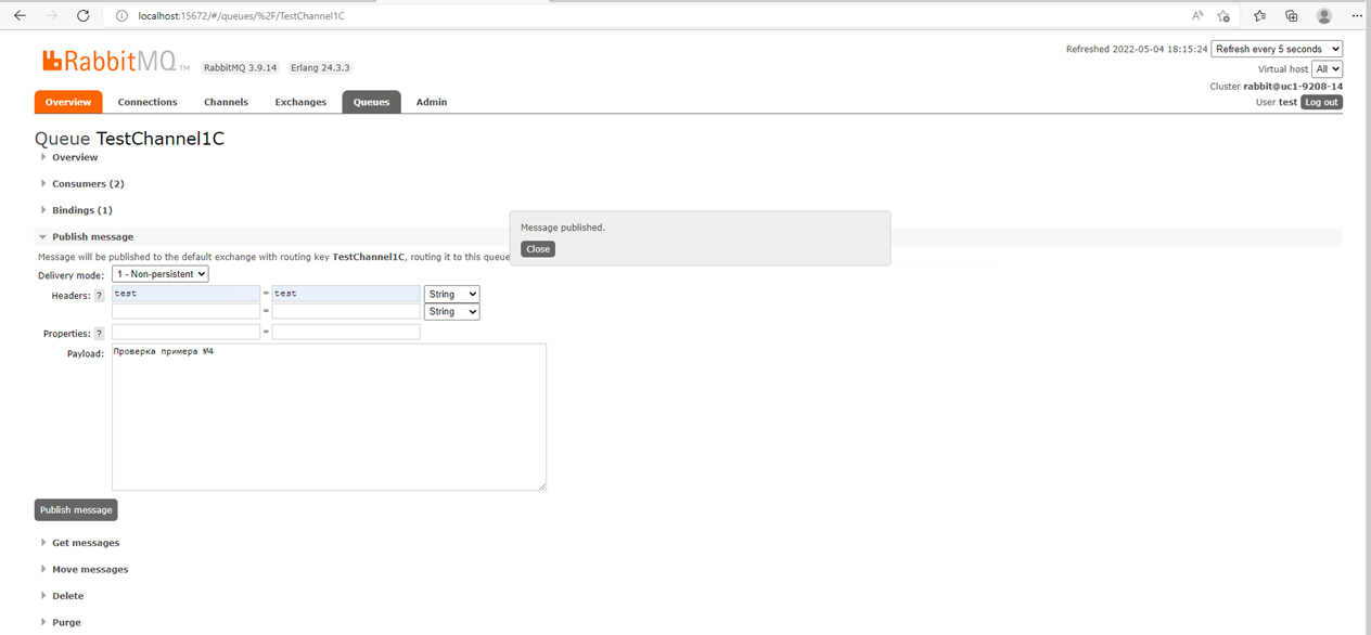 На этом пример по отправке сообщения из стороннего брокера сообщений RabbitMQ в базу, работающую на платформе "1С:Предприятие", через "1С:Шину" завершён.