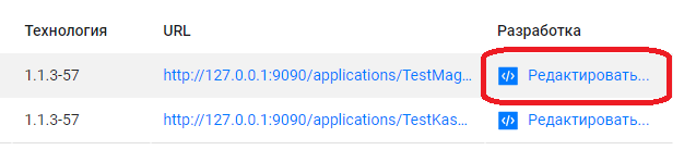 Для настройки процесса интеграции необходимо открыть приложение в среде разработки, для этого нужно в списке приложений нажать на кнопку "Редактировать":