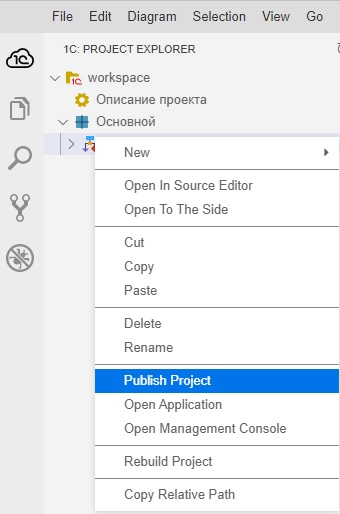 После настройки схемы интеграции ее необходимо опубликовать, для этого нужно нажать клавишу F9, либо в контекстном меню процесса интеграции выбрать пункт "Publish Project":