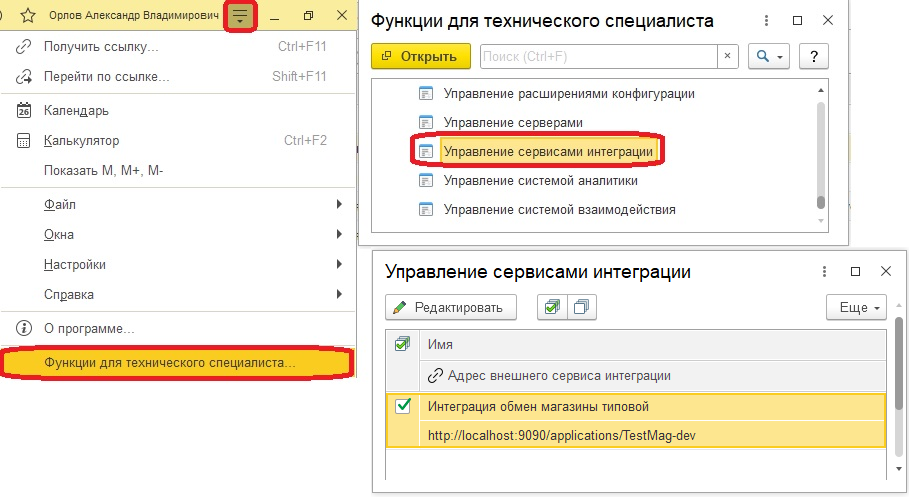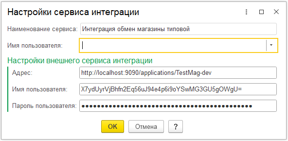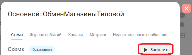 В тестовом примере, имя процесса интеграции – "ОбменМагазиныТиповой".