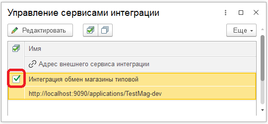 Чтобы запустить обмен сообщениями нужно в форме списка сервисов интеграции установить флаг "Активность" у выбранного сервиса: