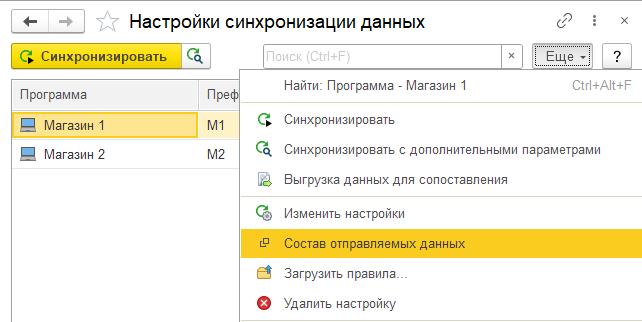 - Магазин 1 (код "М1") – информационная база 1С:Розница.