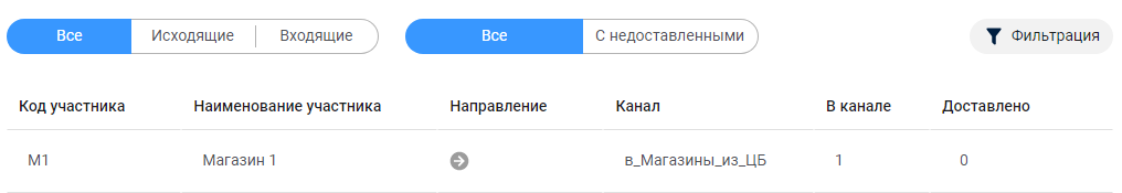 В журнале сообщений колонка "В канале" в приложении 1С:Шина показывает, что сообщение ожидает доставки в узел: