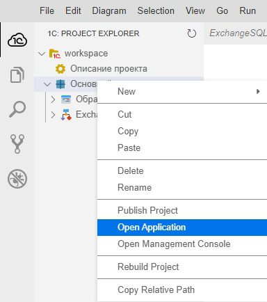Для включения информационной системы в состав приложения необходимо перейти на вкладку "Процессы" и выбрать процесс "Основной::ExchangeSQL":