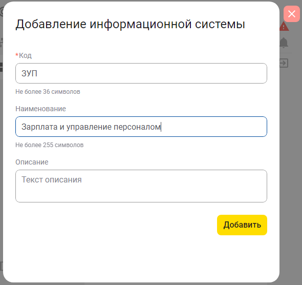 Откроется окно добавления информационной системы:
