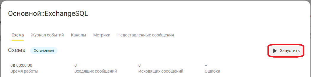 Чтобы просмотреть счетчики каналов, необходимо в приложении "1С:Шины" щелкнуть на процессе интеграции "Основной:: ExchangeSQL", далее перейти на вкладку "Каналы":