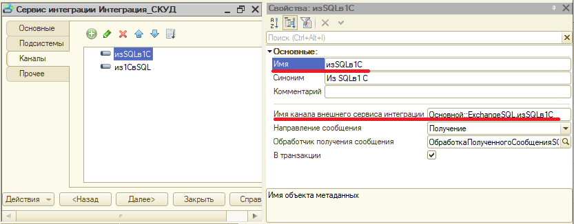 Для удобства можно переименовать название канала в "1С", при этом имя канала внешнего сервиса интеграции необходимо оставить прежним:
