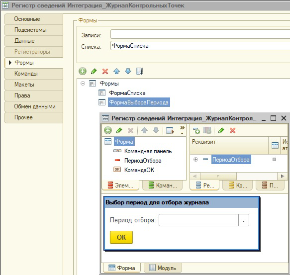 При нажатии на кнопку "ЗагрузитьЖурналИзСКУД" будет открываться форма выбора периода для загрузки, ее тоже требуется создать: