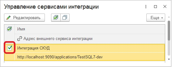 Чтобы запустить обмен сообщениями, нужно в форме списка сервисов интеграции установить флажок "Активность" у выбранного сервиса: