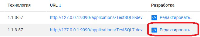 Для настройки процесса интеграции необходимо открыть приложение в среде разработки, для этого нужно в списке приложений нажать на кнопку "Редактировать":