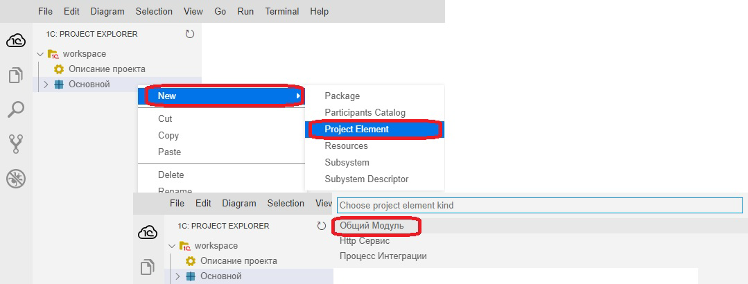 Для этого нужно выбрать подсистему "Основной", далее нажать правую кнопку мыши – откроется контекстное меню, в котором нужно выбрать "New", далее "Project Element".