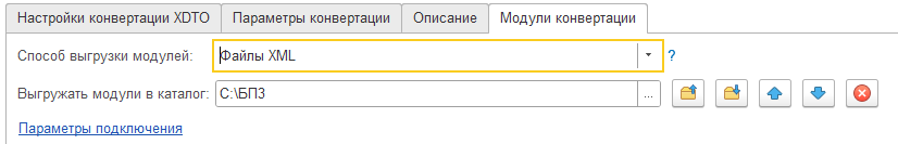 2.      Выгружать модули в каталог: место выгрузки модулей в зависимости от способа выгрузки. Либо каталог с текстовыми файлами, либо каталог куда выгружены файлы конфигурации.