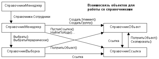 Ниже показана взаимосвязь программных объектов, характерная для объектов, имеющих ссылки (на примере справочников):