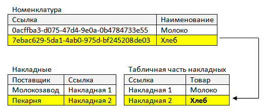 Теперь представим, что поставщик Хлебокомбинат тоже поставил нам хлеб. В результате в табличной части документа Накладная окажется уже две записи, удовлетворяющие условию левого соединения: