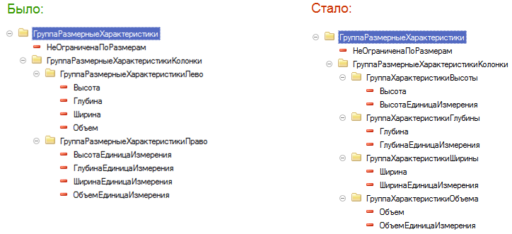 В этих случаях необходимо снять с групп реквизитов флажок "Объединенная":
