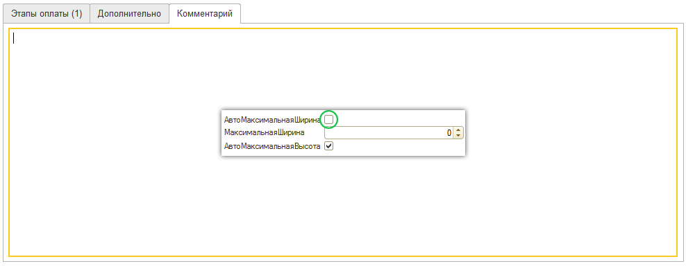 При использовании параметров выравнивания полей, рекомендованных "1С:Предприятием" версии 8.3.7 по умолчанию, примененных к полю Комментарий, данное поле будет иметь недостаточную ширину: