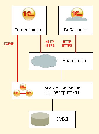 Во-вторых, веб-клиент подключается к информационной базе только через веб-сервер. А это не всегда может удовлетворять требованиям информационной безопасности. Например, организация не хочет «выставлять наружу» веб-сервер, а предпочитает работать с удаленными клиентами через VPN.