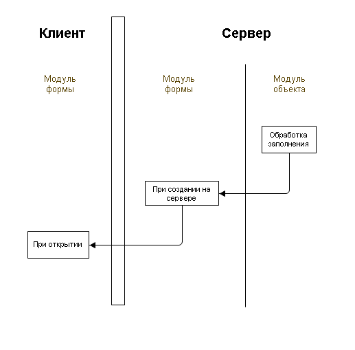 Последовательность событий, которые происходят при открытии формы нового элемента, можно представить следующей схемой: