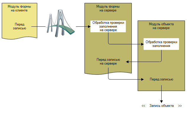 Для этого у него есть два события. Одно событие – Обработка проверки заполнения на сервере – можно обработать в модуле формы. Другое событие – Обработка проверки заполнения – можно обработать в модуле прикладного объекта.