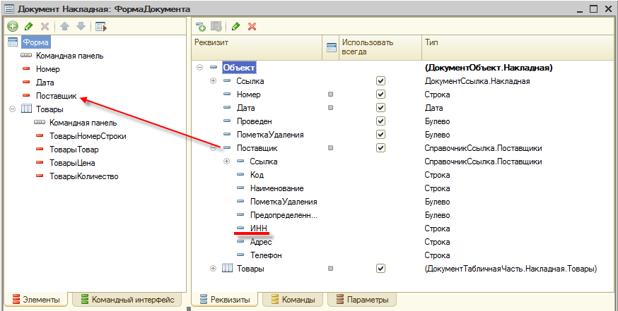 Задача заключается в том, чтобы получить реквизит от ссылочного значения, хранящегося в реквизите формы. Например у документа Накладная есть реквизит ссылочного типа – Поставщик. Необходимо получить ИНН этого поставщика: